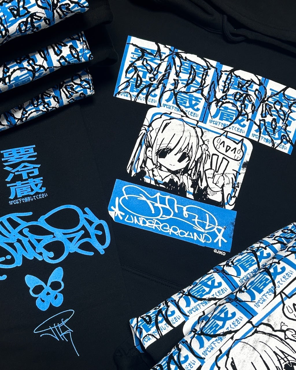 XLサイズのプルオーバーパーカーの前面・背面に、JIKOオリジナルイラストをプリントしました。