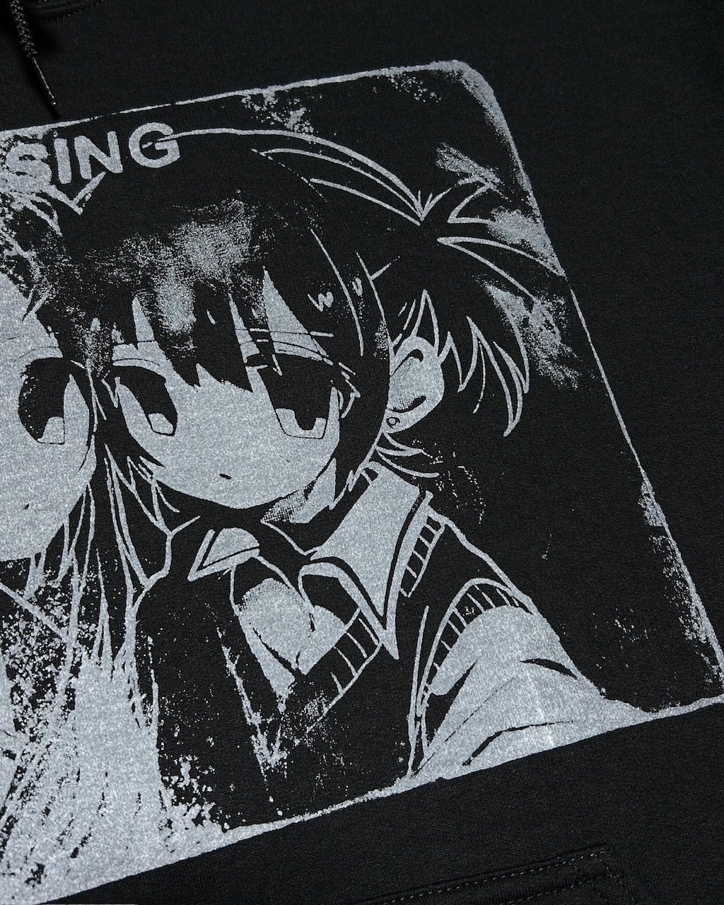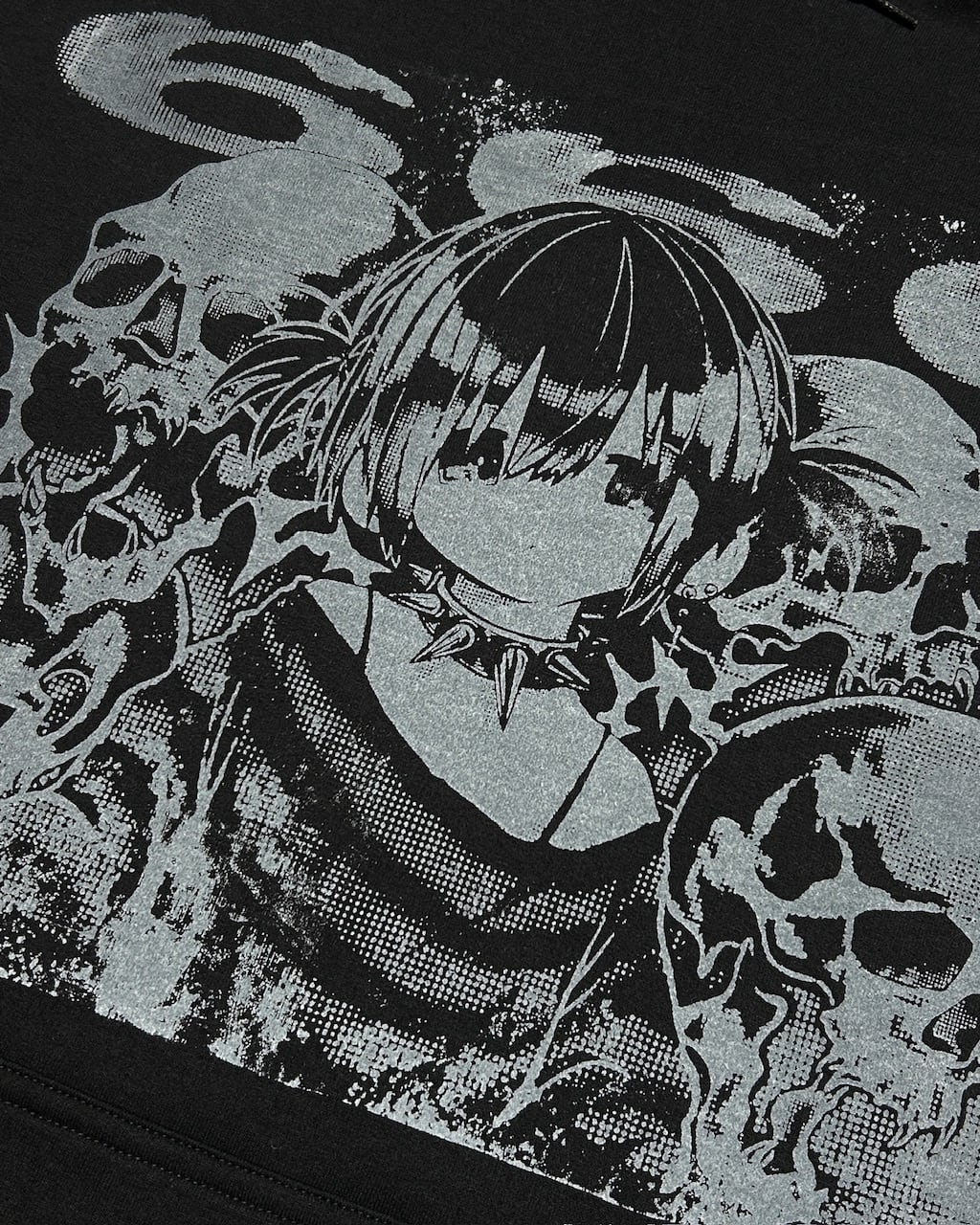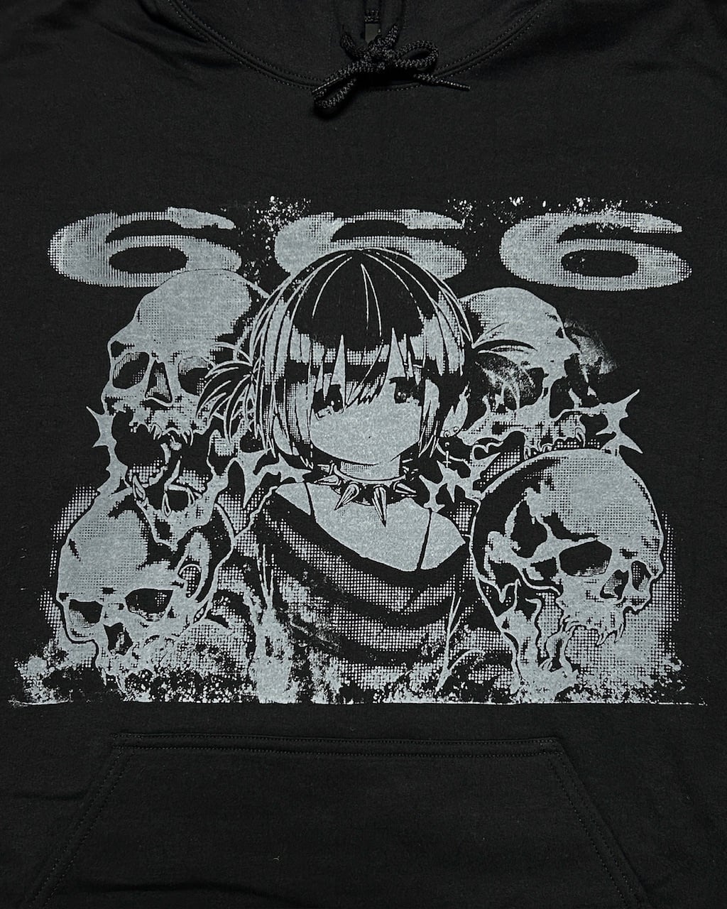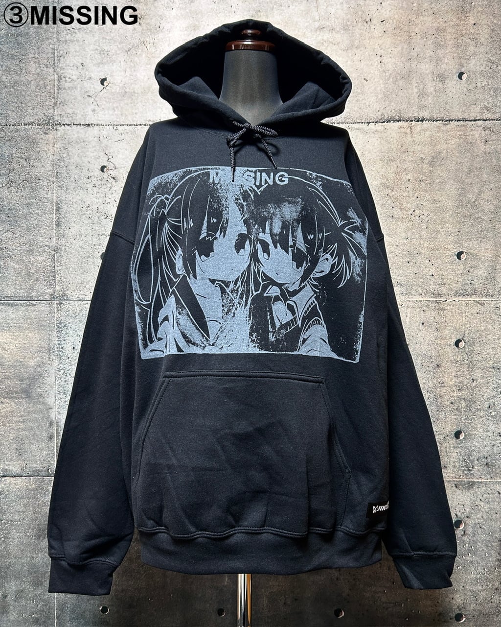 XLサイズの黒パーカーにJIKOオリジナルイラストをハンドプリント。