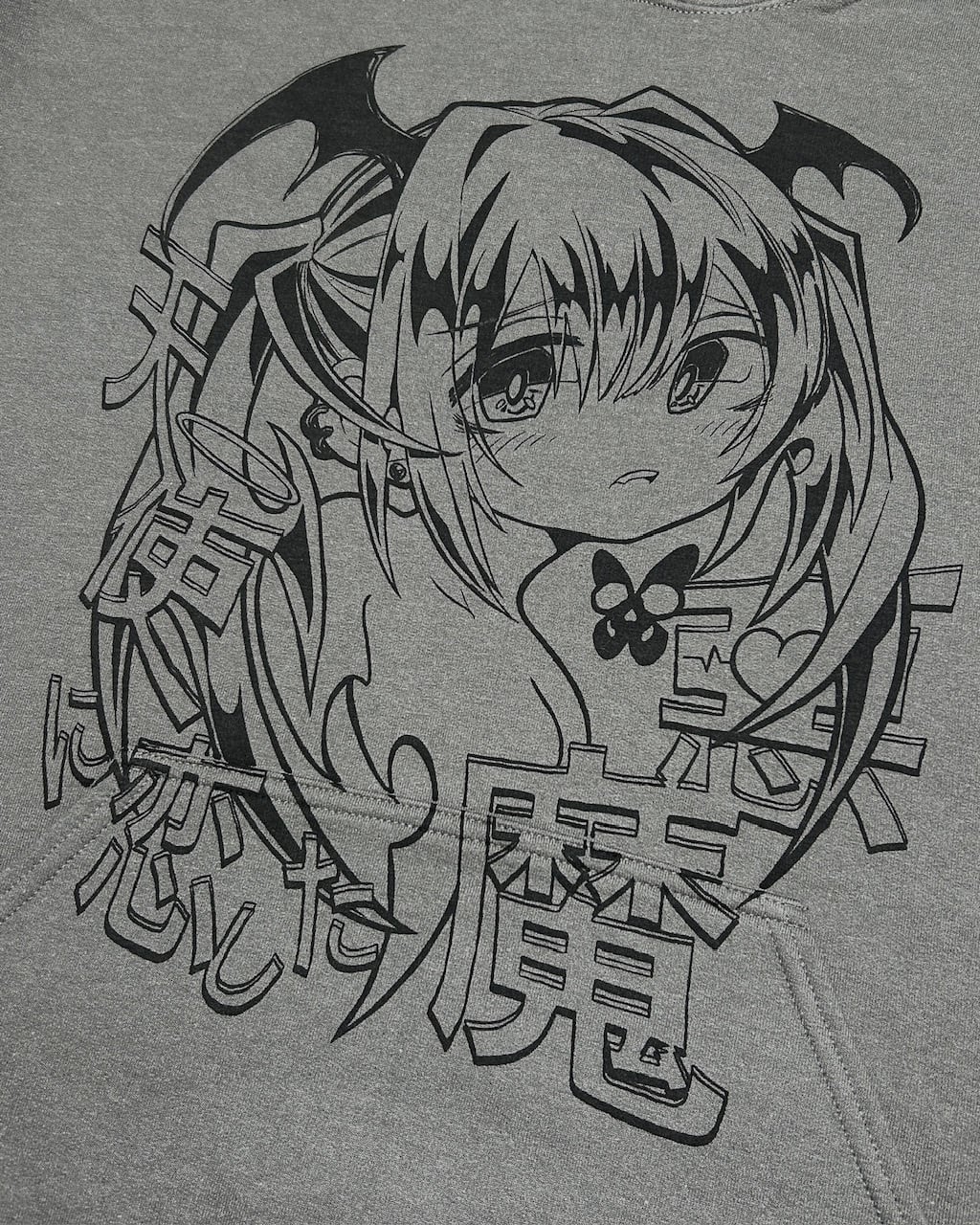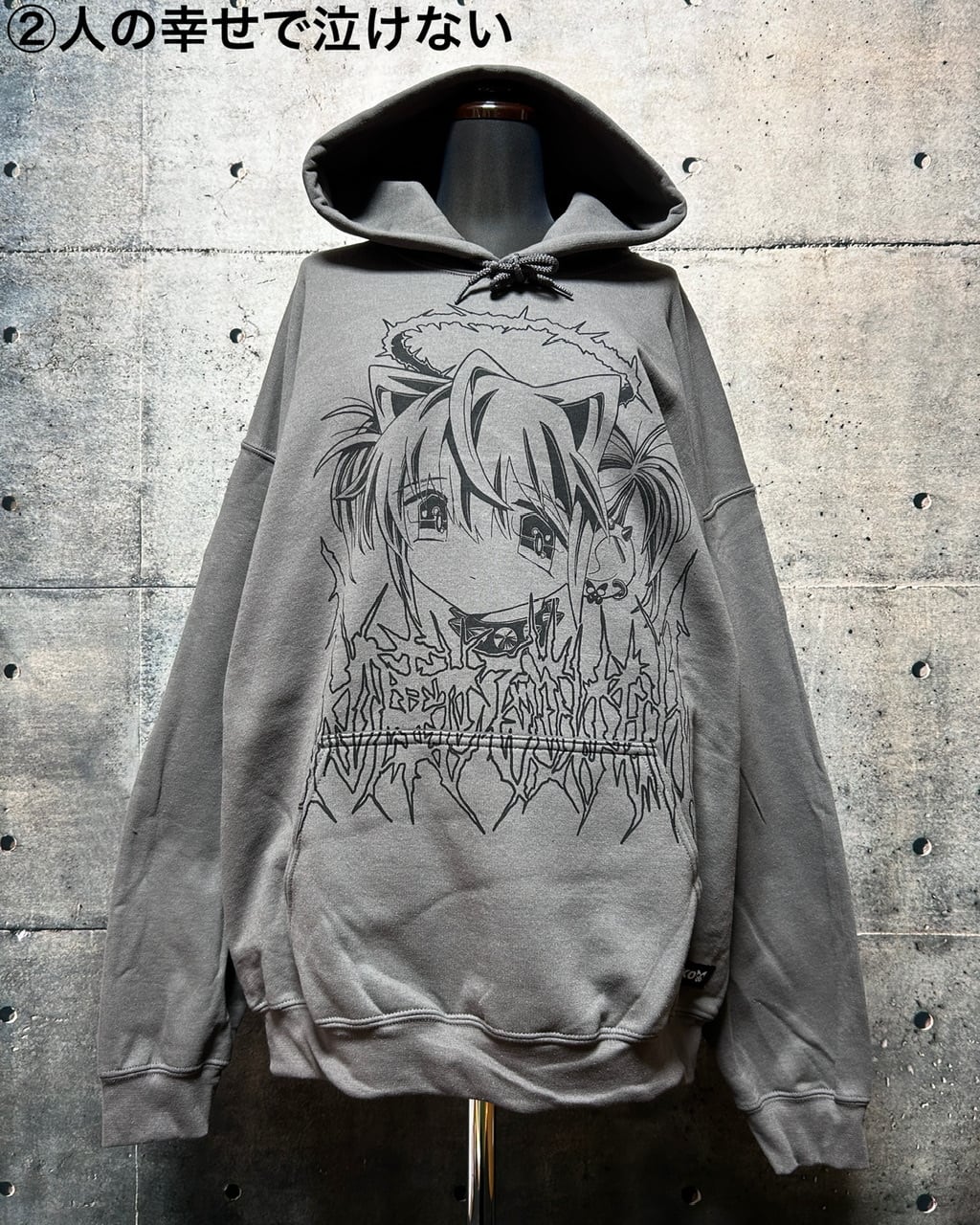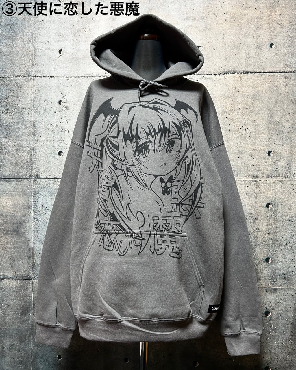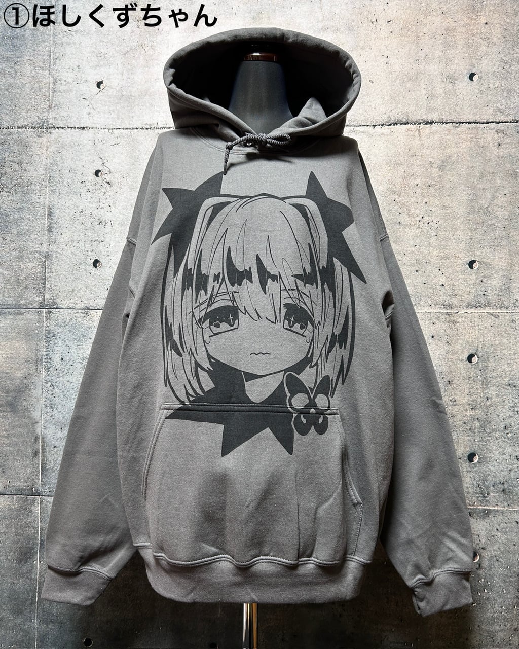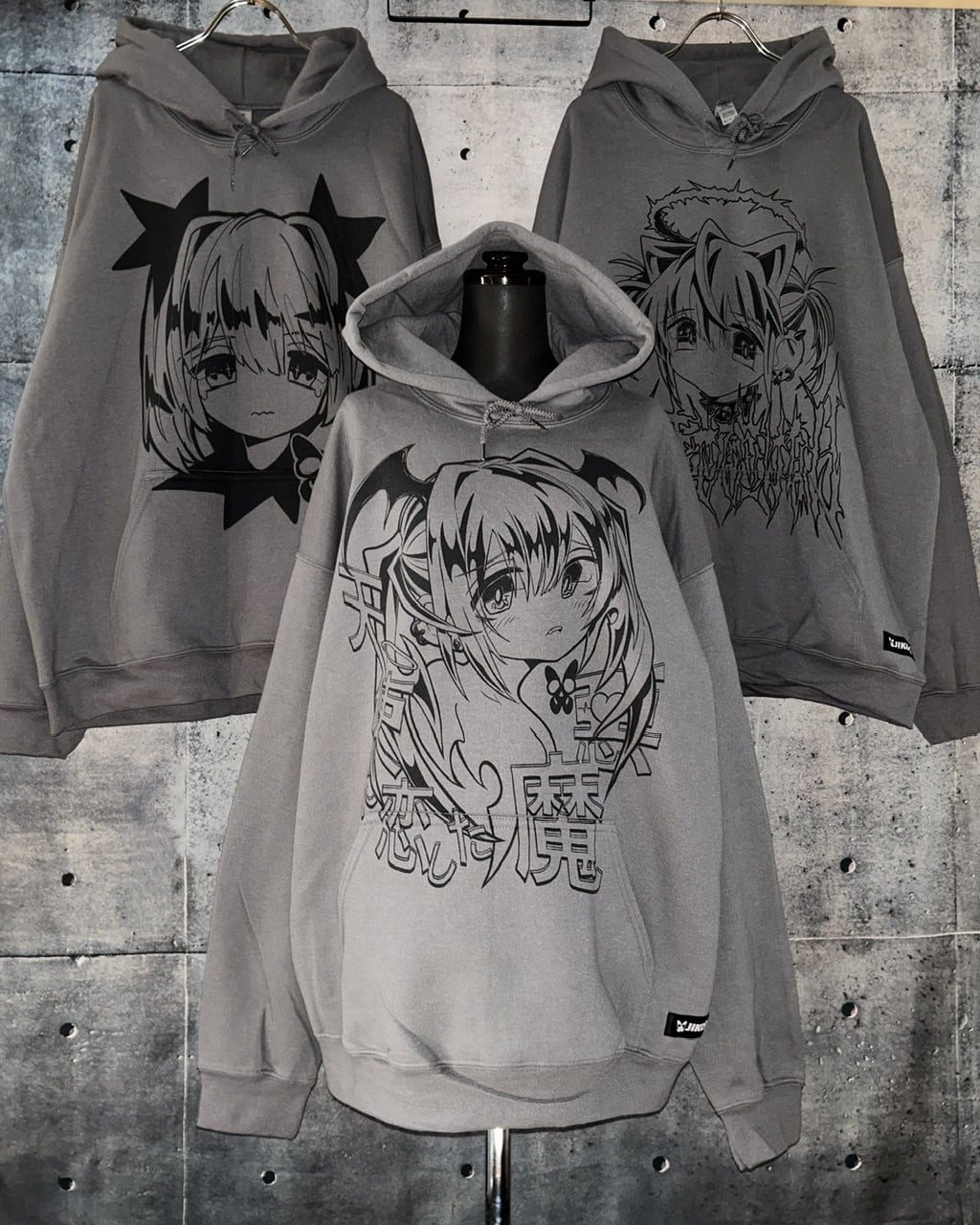 XLサイズのチャコールパーカーにJIKOオリジナルイラストをハンドプリント。