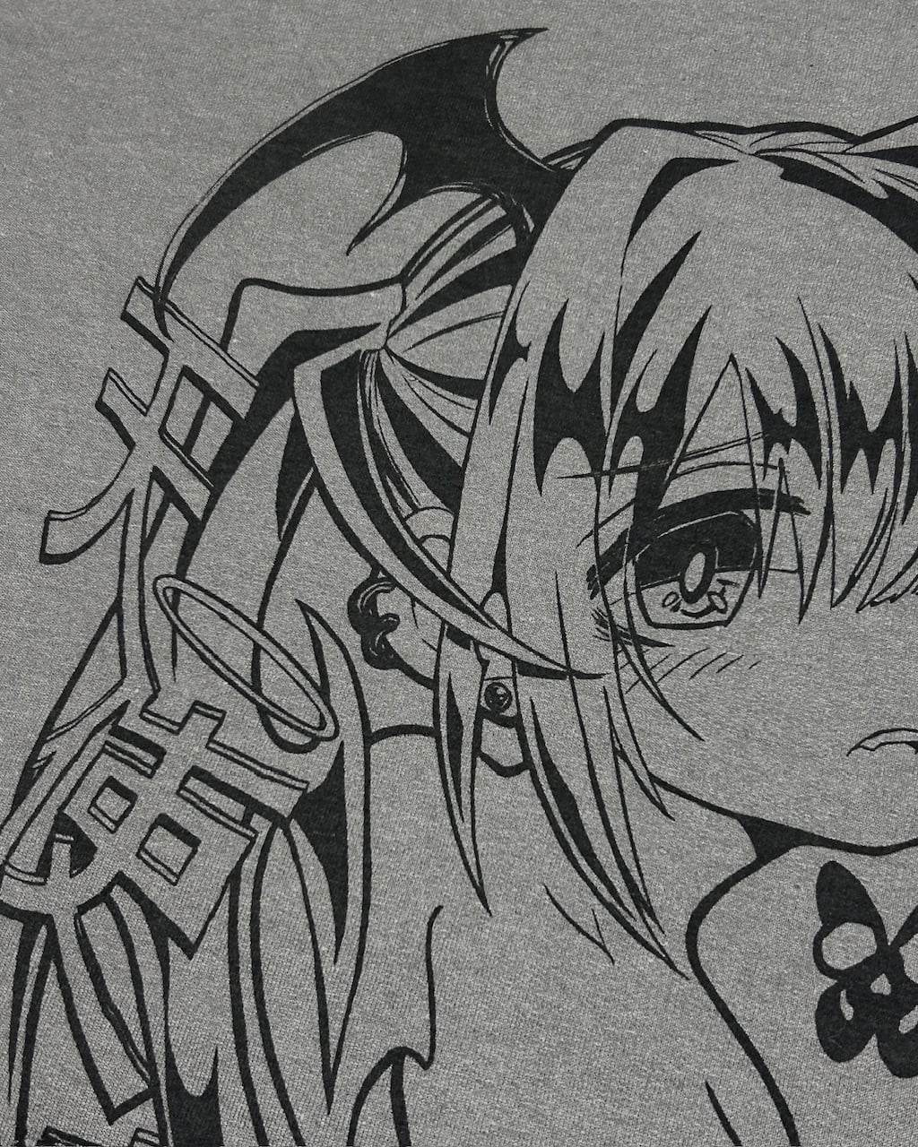前面の大きなプリントはインパクト抜群で、手刷りならではの味のある仕上がりです。