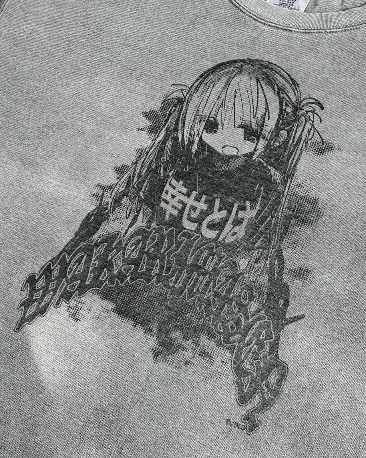 イラストは黒インクでプリント。角度や光によって、はっきり見えたり、見えにくくなったり。目立ちすぎず日常に馴染み、サラリと着られるアイテムです。