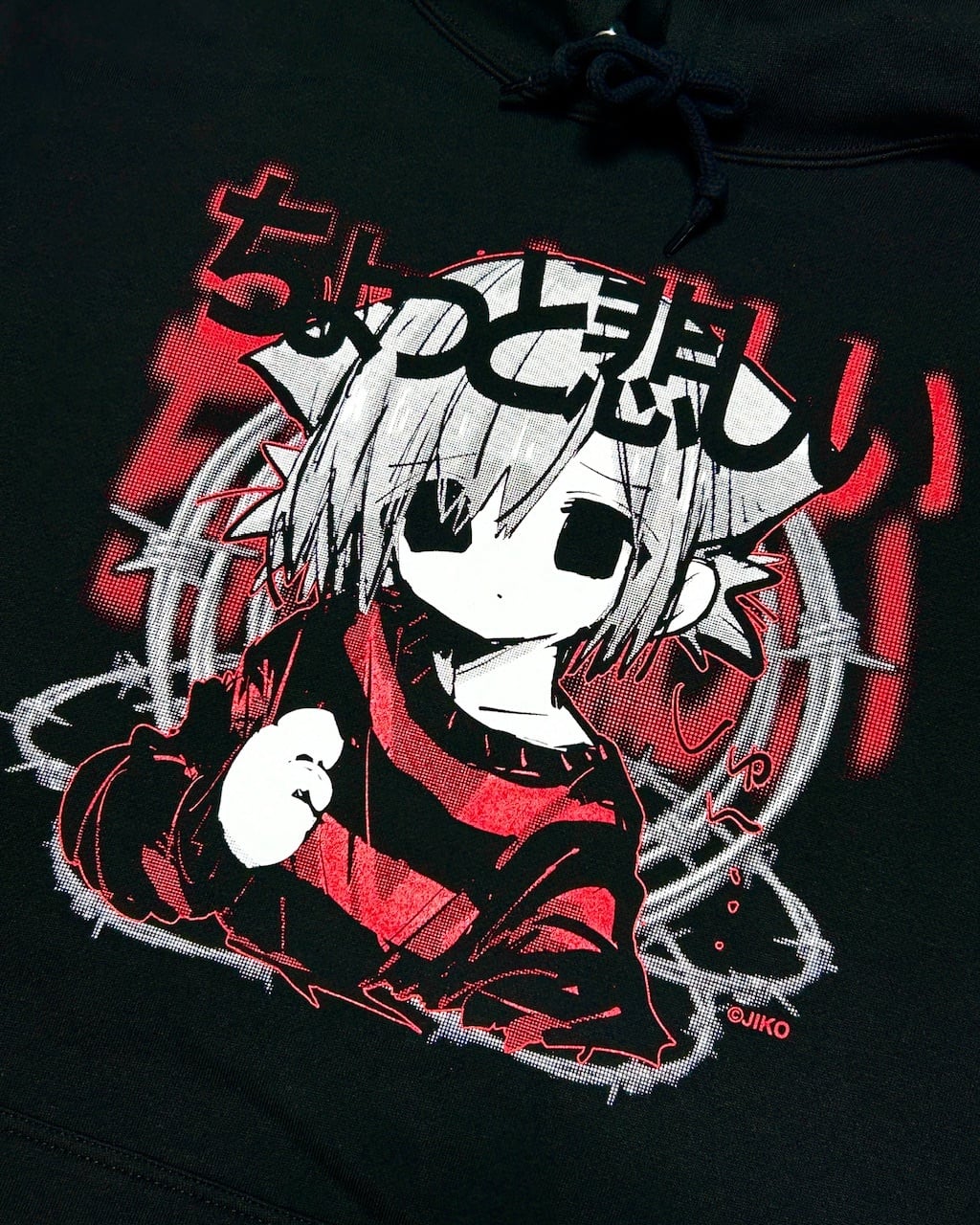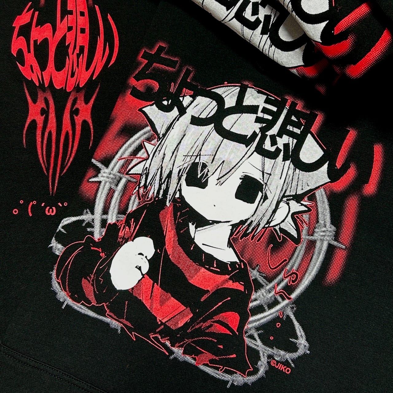 XLサイズのプルオーバーパーカーの前面・背面に、JIKOオリジナルイラストをプリントしました。